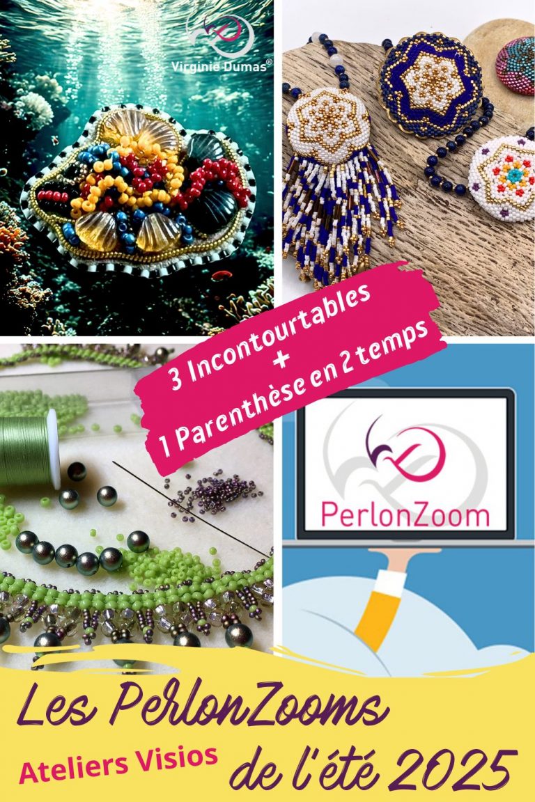 PerlonZoom « Les Incontournables » FILO : Works in Progress Works in progress des élèves PerlonZen ayant participé à l'atelier-Visio « Les Incontournables« du 16 juillet 2025 :Broches…