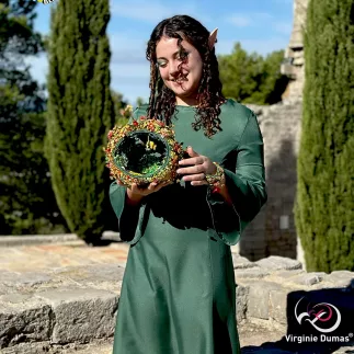 « Depuis toujours, l’héroïque fantaisie et les contes de fées peuplent mon imaginaire, nourri par des récits chevaleresques comme les légendes arthuriennes et la recherche du Graal. Inspirée par ces univers, mais aussi par les oeuvres de Tolkien, Robin Hobb ou Raymond Feist, j’ai voulu créer une pièce qui reflète à la fois la magie de ces mondes et les questions qui résonnent dans notre réalité actuelle. »
