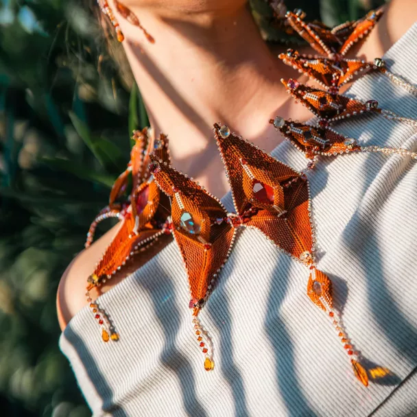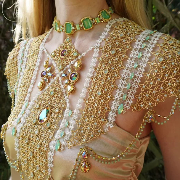 « Virginie Dumas et Stefania Iucci, avec leur habileté et leur vision inégalées, nous ont magistralement transportés vers des terres éloignées et exotiques et dans les paysages sans limites de notre imagination, une perle étincelante à la fois. Leur travail ne se contentait pas de créer, il s’agissait d’évoquer des mondes entiers – riches en couleurs, texture et histoire. Chaque perle qu’elles ont tissées était comme un pas plus profond dans ces mondes, tissant des récits complexes qui captivaient nos sens et nos cœurs. Les deux artistes ont non seulement compris la mission, mais elles l’ont transcendée. Elles ont créé des pièces qui parlaient à l’âme, résonnant avec chacun d’entre nous dans la Nation des Perles qui aspirent à la connexion, à l’inspiration et à l’expression créative