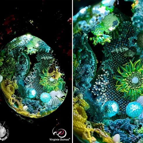 Mes émotions sont aussi riches et complexes que les fleurs et coquillages qui composent cette œuvre. Entre la joie immense, la fierté, et une gratitude infinie, je ressens aussi une vague de vertige face à l’intensité de cette aventure.
