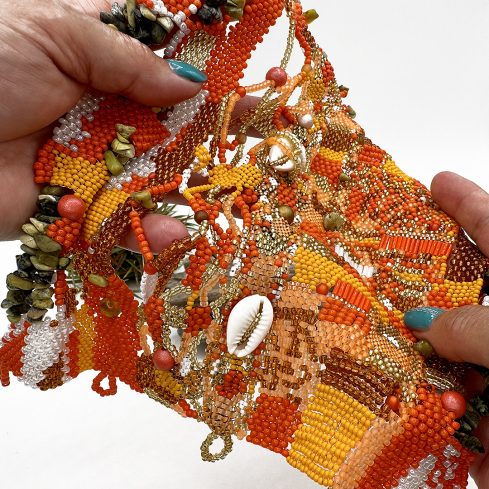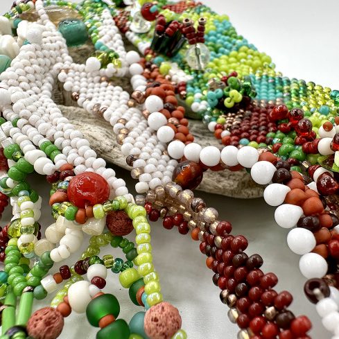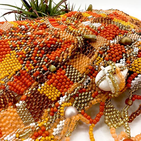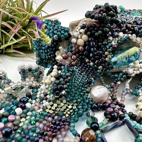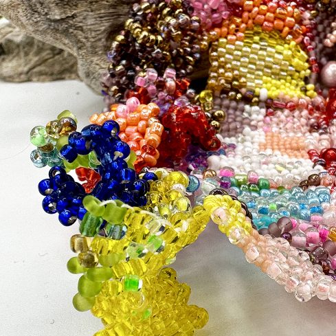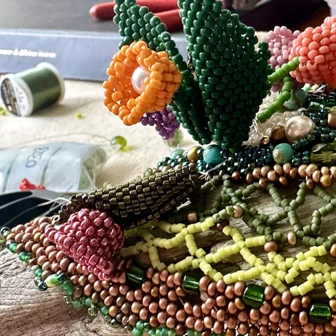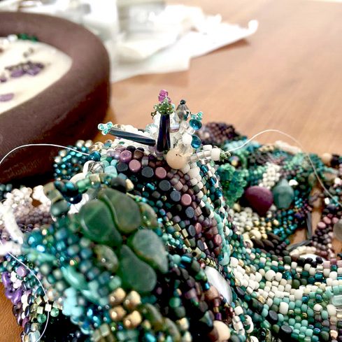 Au cours de ce stage, vous découvrez le perlage Free form, conception abstraite et organique. Vous apprenez les techniques essentielles du tissage de perles pour réaliser un appliqué ou un bijou perlé.