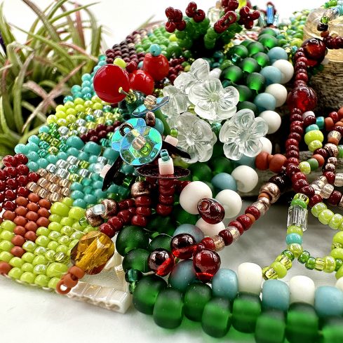 Je vous accompagne et vous guide pour créer votre projet personnalisé où la structure se crée sans rigidité et invite à la créativité. Vous choisissez vos couleurs et vous apprenez comment équilibrer et harmoniser coloris et techniques avec vos perles focus.