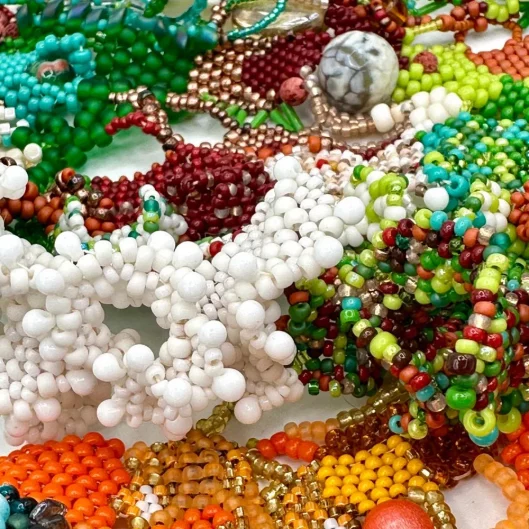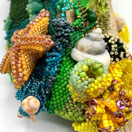 Au cours de ce stage, vous découvrez le perlage Free form, conception abstraite et organique. Vous apprenez les techniques essentielles du tissage de perles pour réaliser un appliqué ou un bijou perlé.