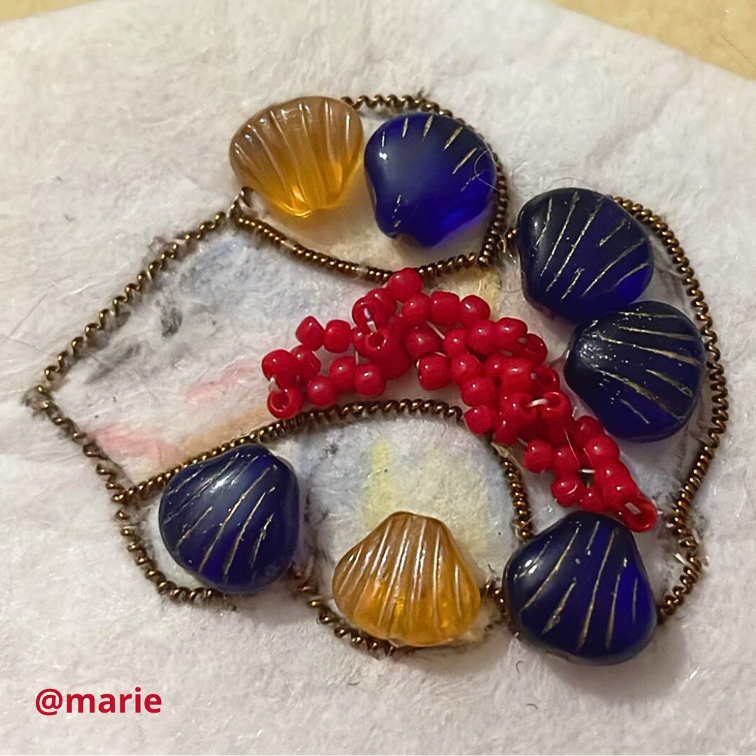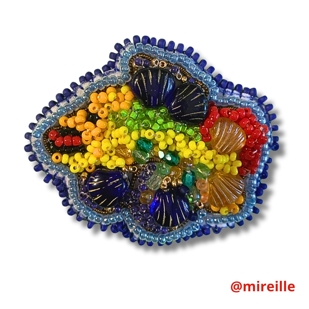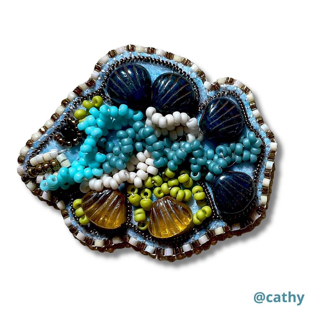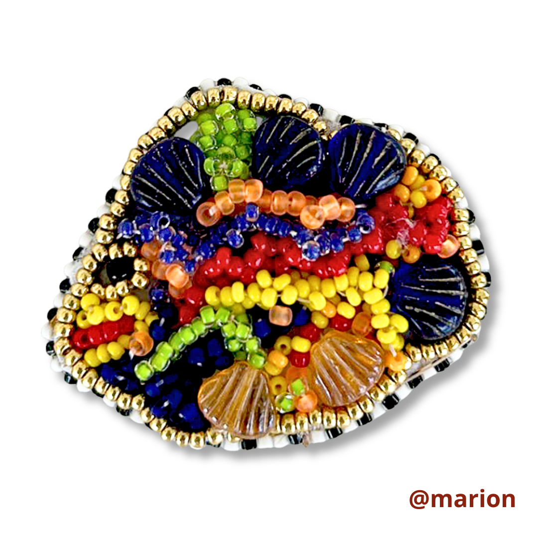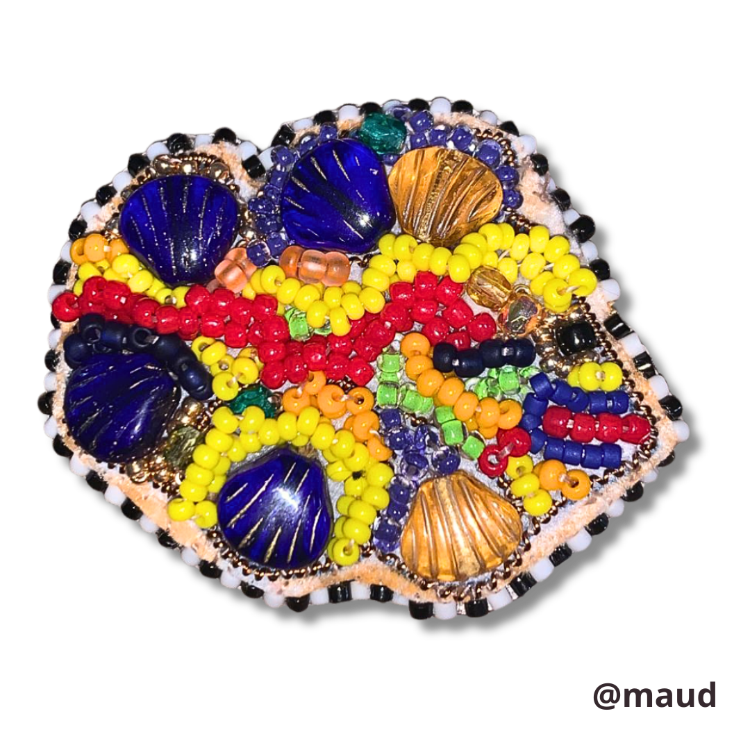 Toute en délicatesse, ce bijoux mêle broderie perlée, textures marines et lignes organiques, pour te plonger dans un univers poétique où souffle et silence s’entrelacent.